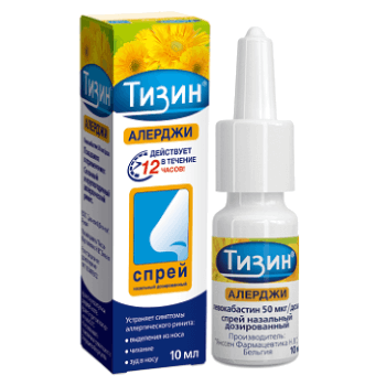 ТИЗИН® Алерджи выпускается в форме спрея, что позволяет равномерно орошать слизистую оболочку носовой полости.
