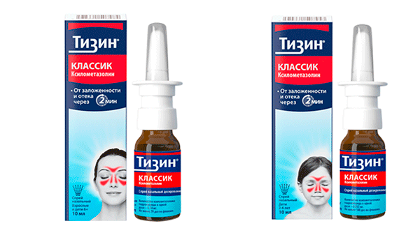 Брызгаем средство от насморка и заложенности, такое как современный препарат ТИЗИН® . Цель – снять отек слизистой оболочки носа и нормализовать дыхание.